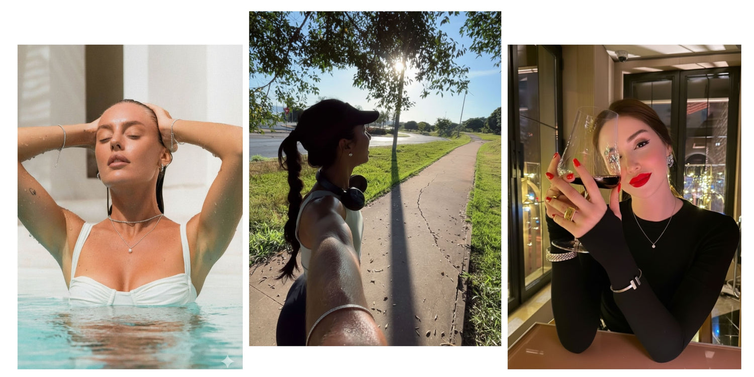 Feitas em prata 925 com garantia vitalícia, nossas joias são à prova d’água, de calor e de suor — perfeitas para mulheres que vivem intensamente.